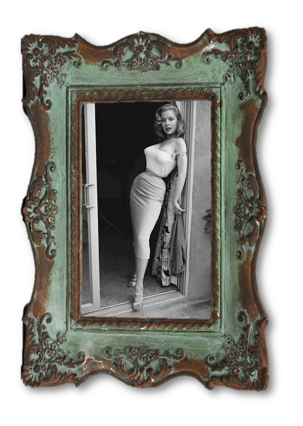 Glamour girl from the 1950’s and pin up Betty Brosmer who had the amazing hourglass figure of: 38-18-36 (inches). Here she has the most tiny waist, I know a lot more clothes were handmade in the fifties, but wow it would be hard to dress to figure like that off the peg!